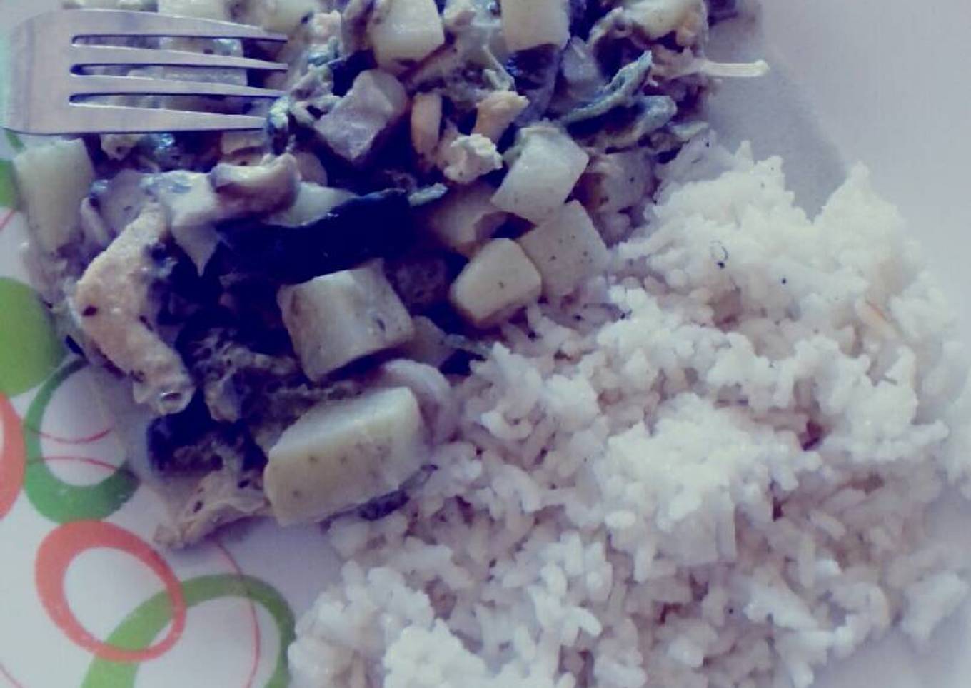 - Ya que este cocido el pollo, agregar las papas,los champiñones,los chiles.
