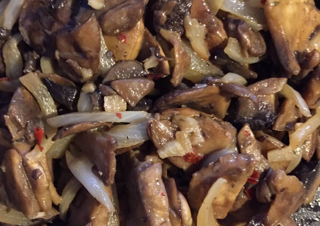 - Sofríes la cebolla y el ajo en aceite de oliva; una vez que cambian de color agregas los champiñones e integras
