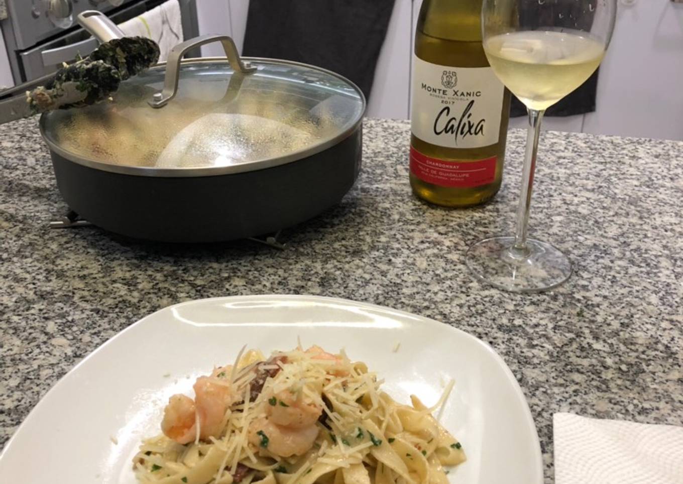 Pasta Alfredo con Camarones