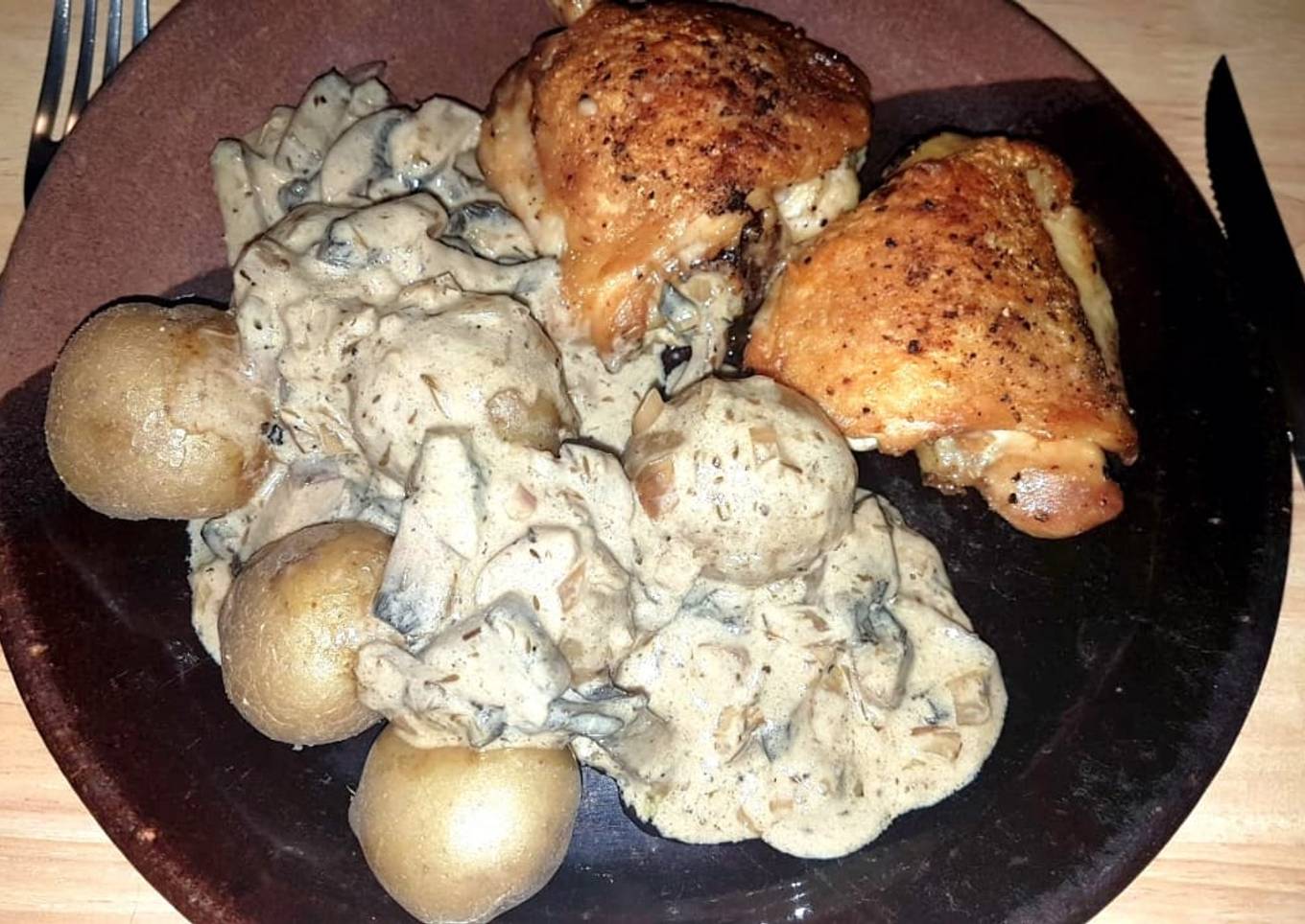 Instructions to make to make Muslos de pollo con salsa de champiñones