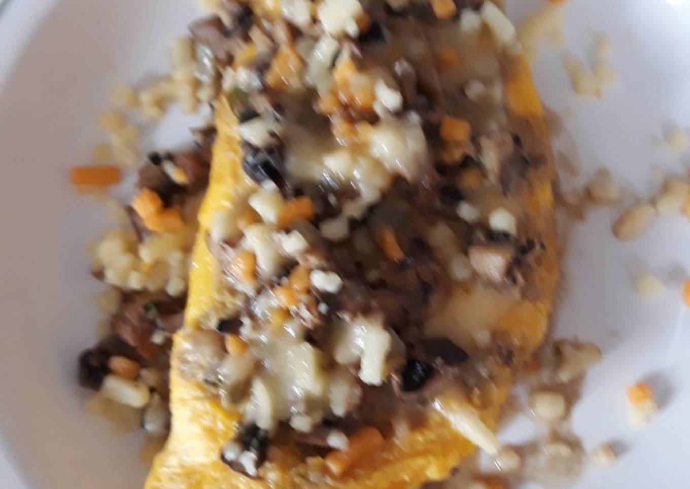 - Se saca el omelette y se rellena, yo le puse encima un poco del guisado y queso.