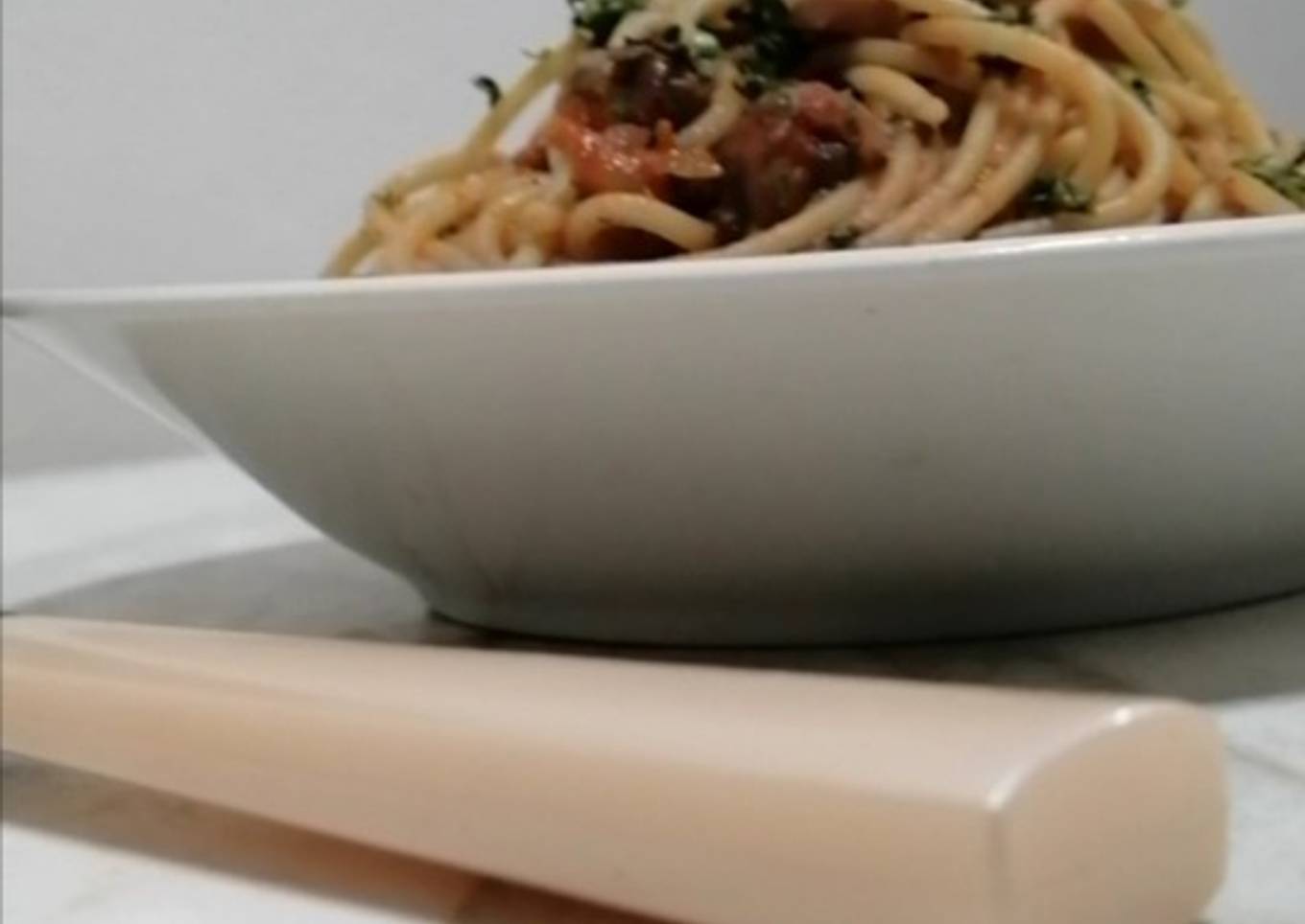 - Mezclamos la pasta con la salsa y servimos. Puedes acompañar con pan de ajo y vino tinto