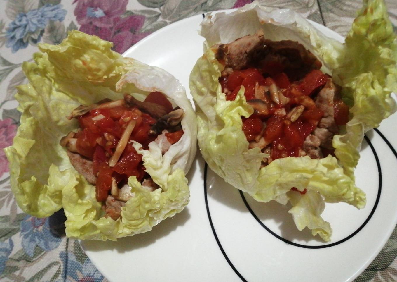 - Picar la lechuga y colocarla como base en un plato. Luego colocar encima todos los ingredientes.