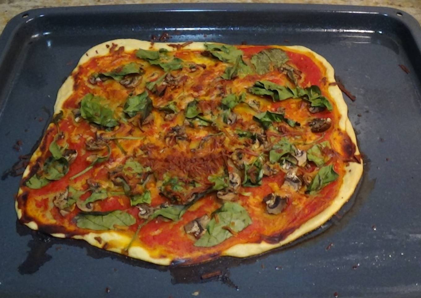 Pizza de espinacas y champiñón