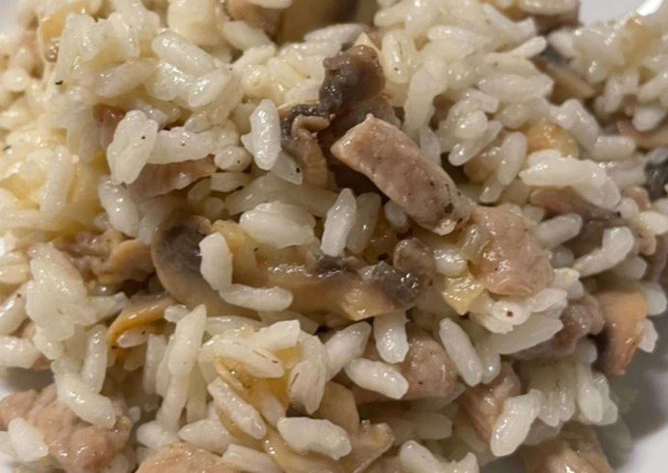 Risotto de champiñones y pollo
