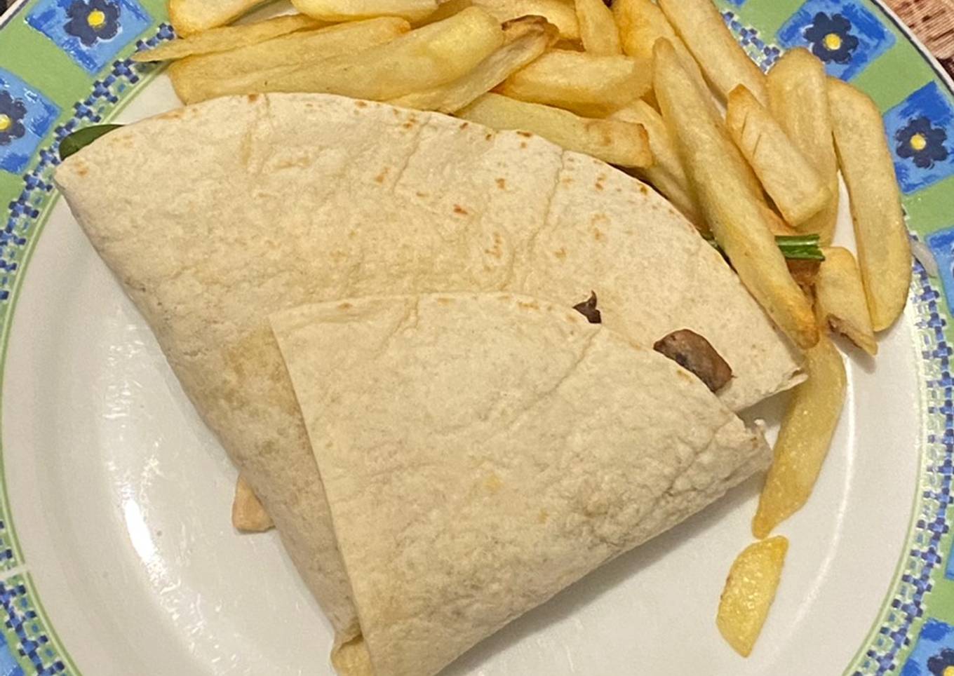 Wrap con pollo, champiñones, espinaca, guacamole y papas a la francesa ✨
