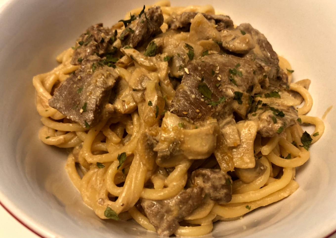 Steps to make to make Espaguetis en salsa con ternera y champiñones 🍄