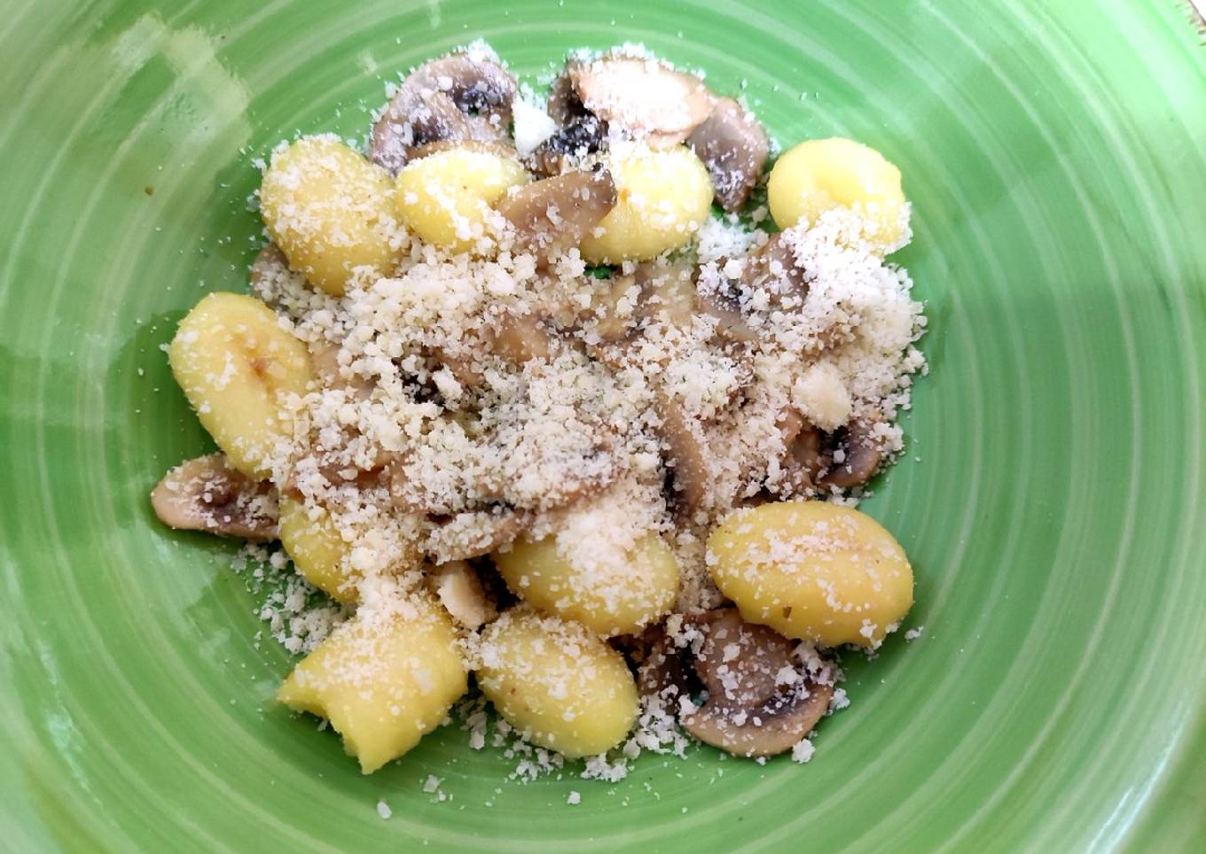 Ñoquis con champiñones y grana padano