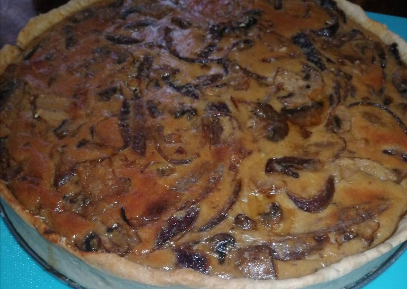 Quiche de champiñón y cebolla morada
